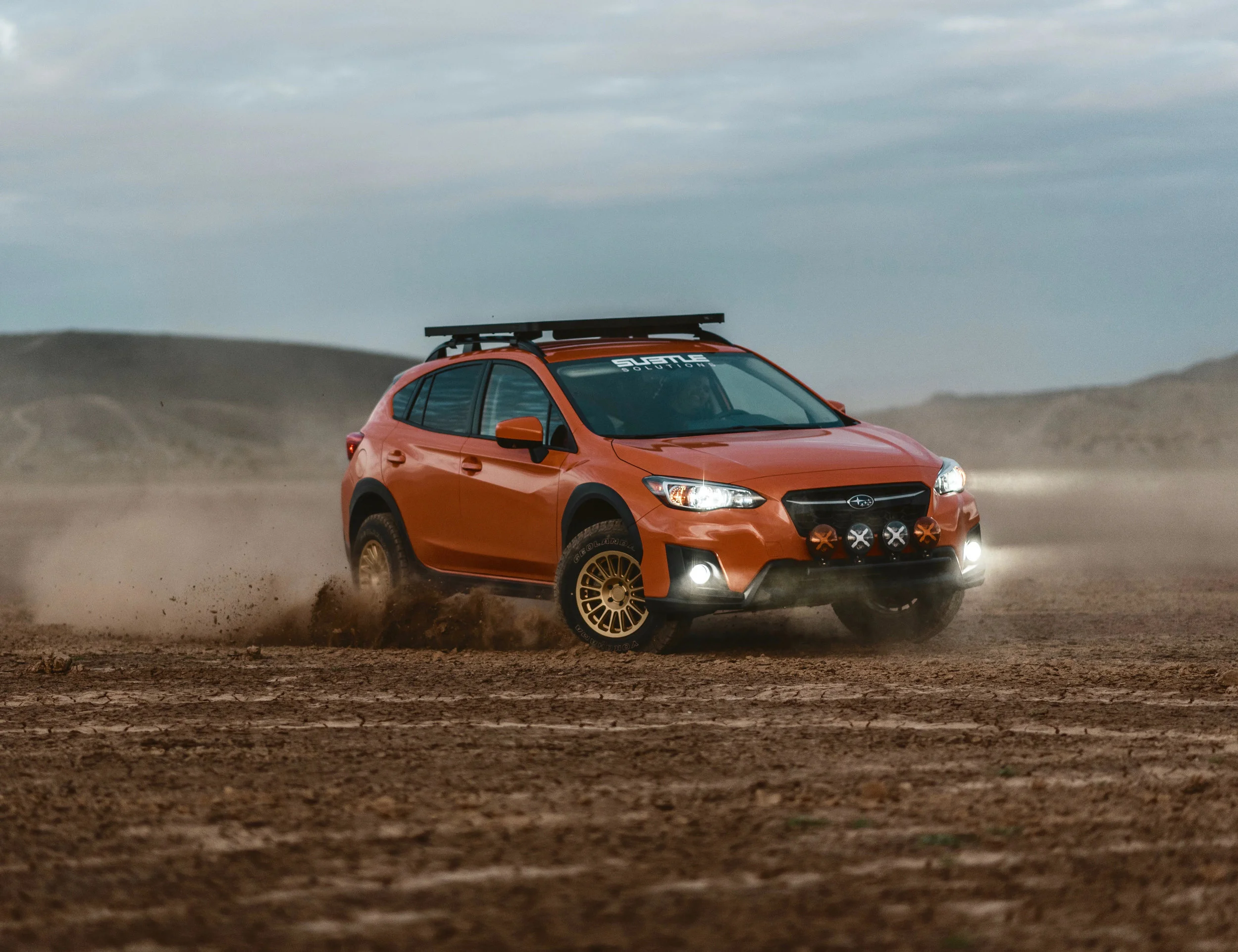 My name is Colton Mantolino (or ProjectCrosstrek on IG) and I drive 2016 Subaru Crosstrek (6 speed A/T CVT). It’s fitted with a custom tube front bumper by Stellar Built from Sacramento, California and a rear bumper / tire carrier by Mad Millers Race Worx here in Las Vegas, Nevada. My trek is currently lifted on Anderson Design and Fab 1 3/8” strut spacers, 1” subframe spacers and 1.2” lift springs by Eibach. To get me rolling around, I chose 15x7 +15 Motegi MR139 wheels wrapped in 28” Hankook Mud terrains. For the times I go camping, I chose to run a Tepui Ayer Sky 2 RTT with Yakima towers and crossbars to keep it securely attached to my roof. But to really set my Crosstrek off from other builds, I had Film Workz in Las Vegas do a complete color change using Avery Dark Gloss.